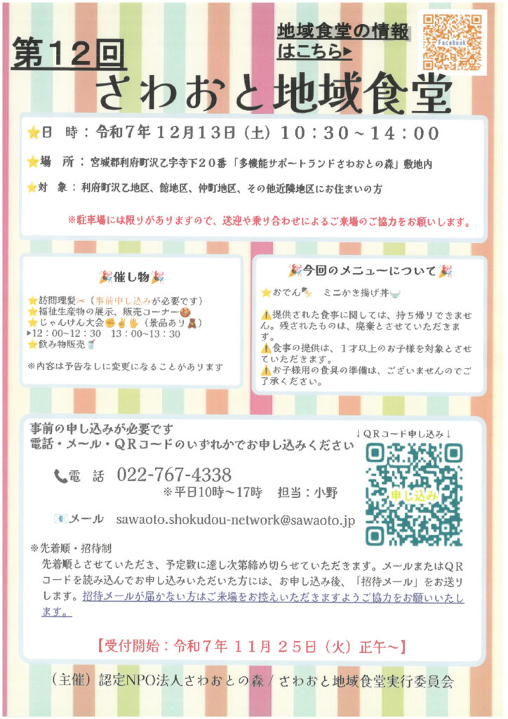 「さわおと地域食堂のイベントに使用させていただきます。」
